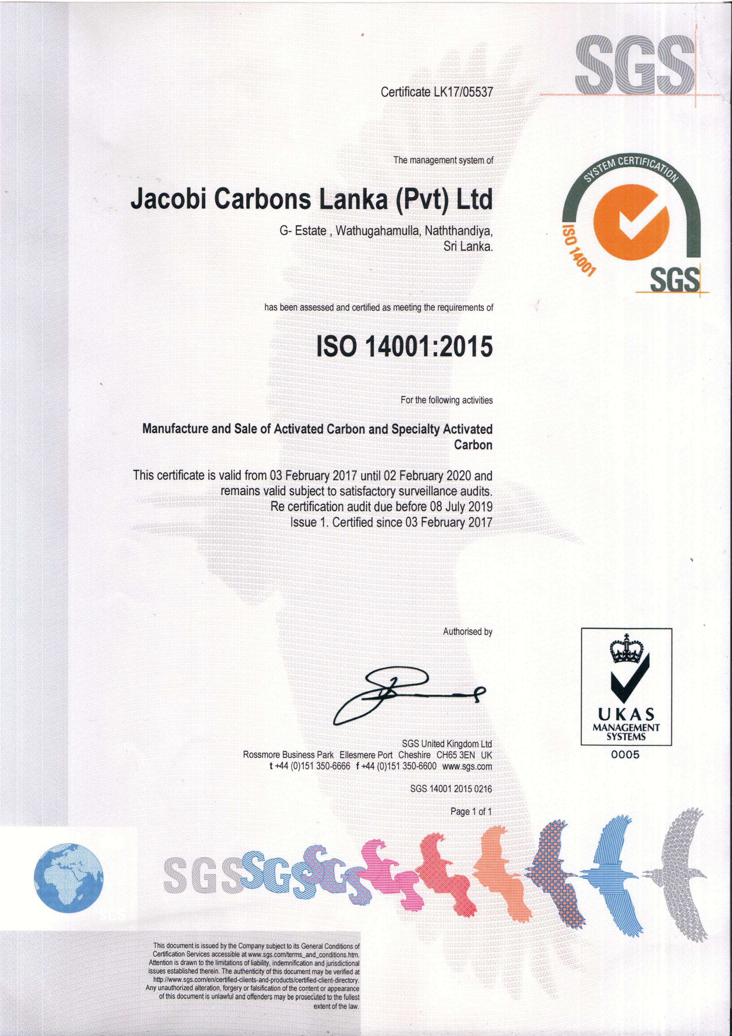 Congratulations to Jacobi Carbons Lanka (JCL) for this outstanding achievement. It is the dedication of all members of the operations team, as well as the management that allows a business to achieve such ISO14001:2015 accreditation. The consideration of all aspects of our work and the impact on the environment within and beyond the factory is engrained in everyone’s mind.